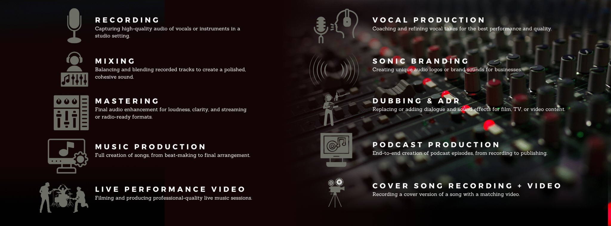 Step into our live studio — where raw talent meets high-end sound. Designed for vocalists, bands, and solo artists, our treated room captures clean, vibrant takes in real time. Whether you're recording full performances, live sessions, or layered vocals, our setup ensures a comfortable space with top-tier acoustics and gear to match. Come in, plug in, and let the music speak for itself.
